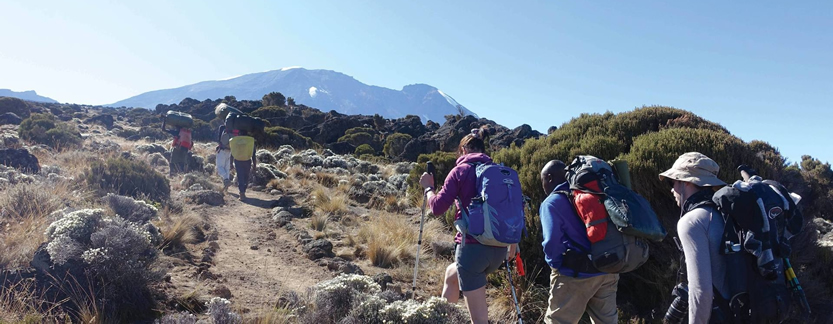 Leave the glades of forest and follow an ascending path on the open moorlands to Horombo Hut - lying at 12000ft/3700m. Overnight at camp.